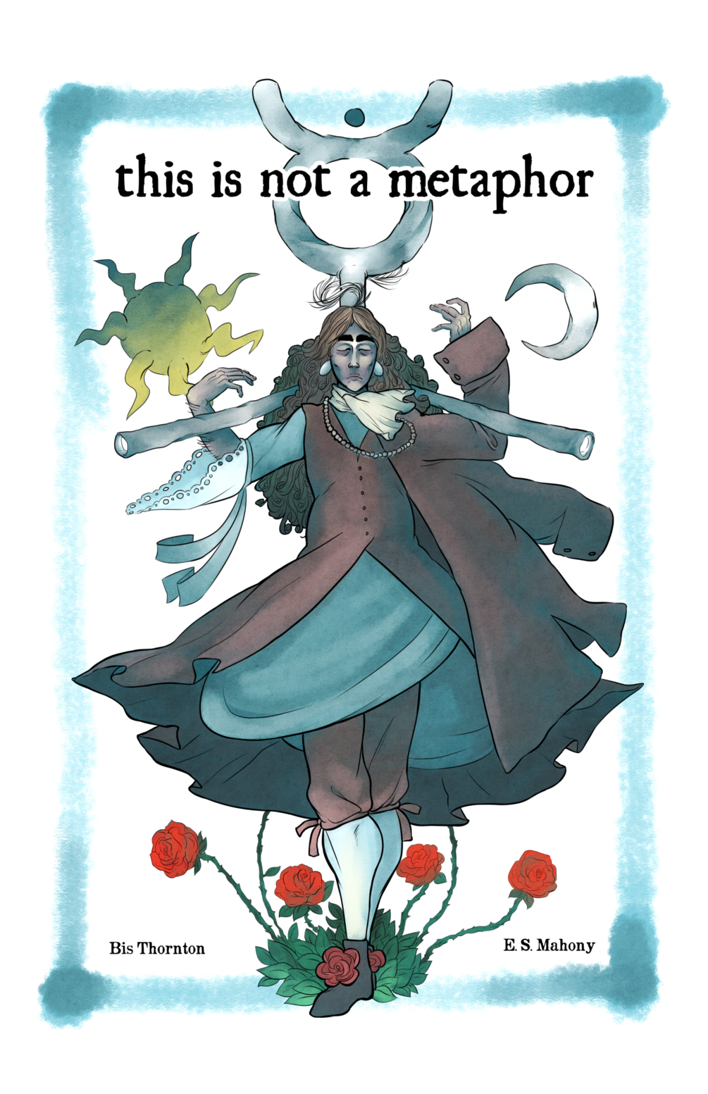 A 6-page comic about androgynous 17th century alchemists in France, co-written by Bis Thornton and E.S. Mahony, illustrated by Bis Thornton. Featured in Dates: A Queer Historical Fiction Anthology.